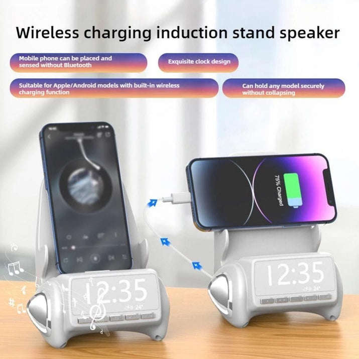 A dock that defines smart living — combines sound, time, and wireless charging in one elegant form.